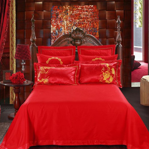 大紅婚慶貢緞提花四件套高端彩繡I系列(可搭配4-10件)