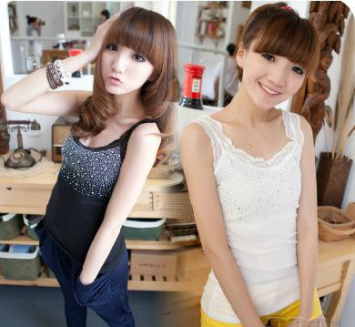 2013春夏裝新款蕾絲花邊燙鉆打底小背心 女士修身吊帶衫 批發