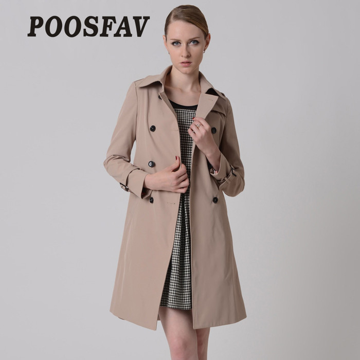 poosfav寶詩(shī)梵全國(guó)招網(wǎng)絡(luò)實(shí)體代理加盟商 寶詩(shī)梵2014新款秋季歐美長(zhǎng)款長(zhǎng)袖風(fēng)衣秋裝雙排扣卡其色外套女批發(fā)招商