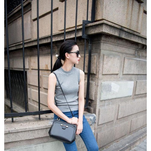 歐美復古小高領螺紋無袖薄款套頭打底針織衫背心 6803
