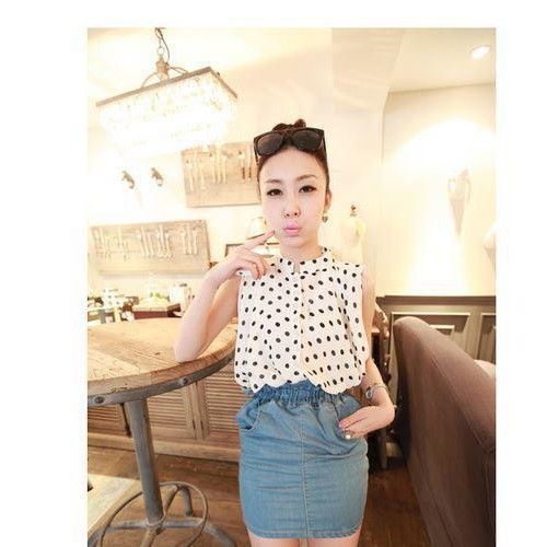 批發2013韓版實體店爆款無袖寬松洋氣波點雪紡衫雪紡襯衣西裝女裝