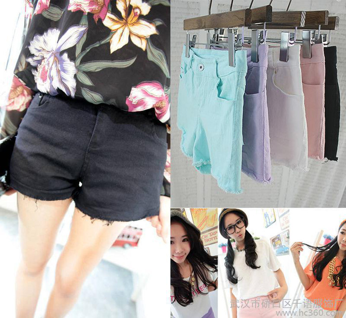 2015日韓夏季時(shí)尚休閑百搭糖果色牛仔短褲磨毛流蘇磨邊 5色