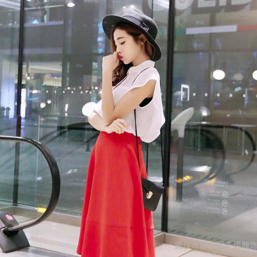 韓國(guó)東大門前短后長(zhǎng)背心長(zhǎng)裙子兩件套連衣裙 經(jīng)典顯瘦大碼連衣裙