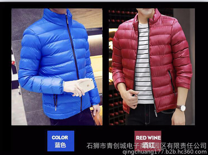 石獅青創(chuàng)城服裝批發(fā) 微信分銷平臺 服裝市場 2016秋冬季青年立領棉衣夾克羽絨服 男修身帥氣大碼韓版潮流休閑上衣外套