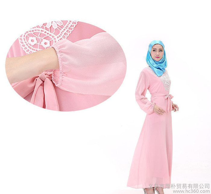 新款穆斯林雪紡長裙 阿拉伯回族民族服裝 大碼女裝長袖連衣裙