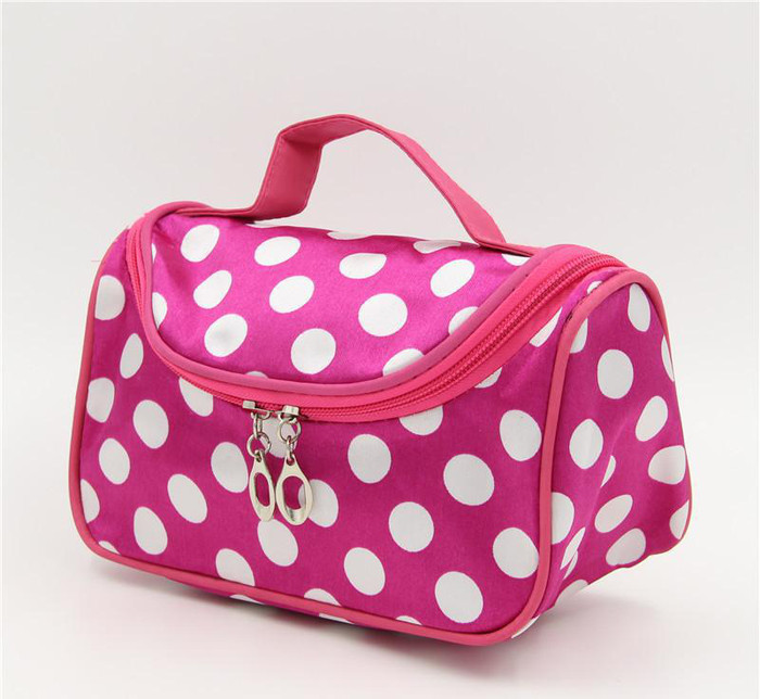 義烏定做 外貿(mào)色丁尼龍圓點(diǎn)可愛旅游收納包洗漱化妝包