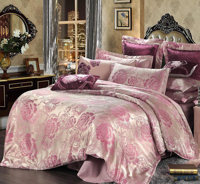 圣亞娜家紡 貢緞提花四件套 歐式床上用品婚慶床品套件直銷