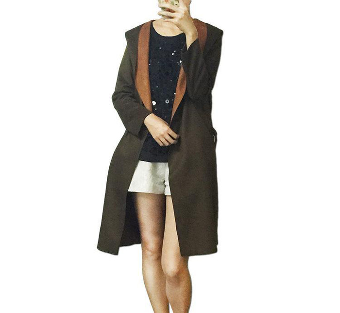 2015秋冬歐美女裝系腰帶新款羊絨復(fù)合面料長風(fēng)衣一件代發(fā)