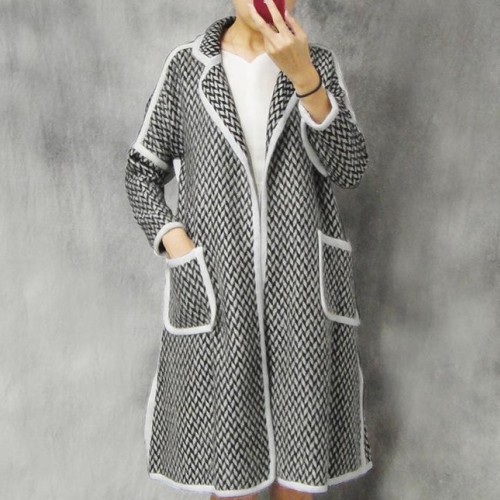 2015秋冬新款人字羊毛織歐美女裝寬松包邊風(fēng)衣外套一件代發(fā)