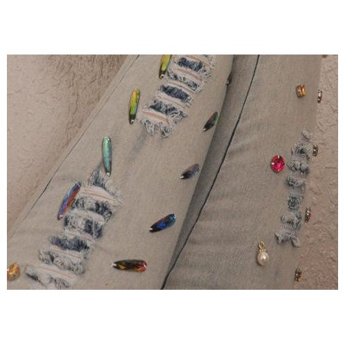 歐洲站秋冬韓版鑲鉆牛仔褲女潮 破洞釘珠修身小腳褲長褲
