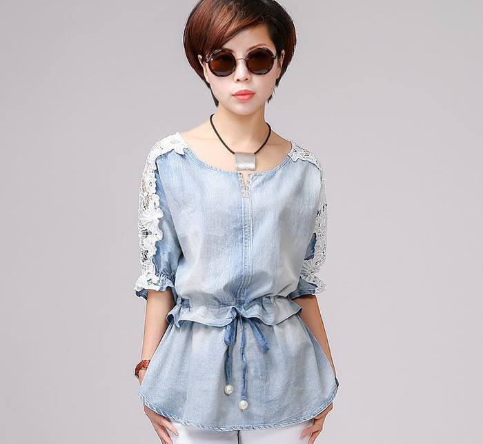 春夏裝新款 歐洲站七分袖牛仔打底衫女上衣