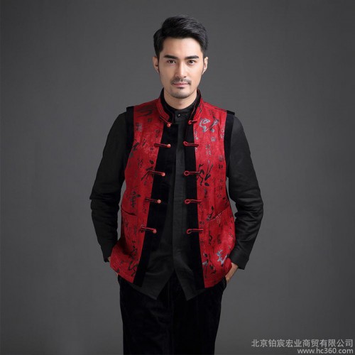 中老年唐裝民族服飾中式外套中國風(fēng)立領(lǐng)休閑秋冬季黑色背心 馬褂