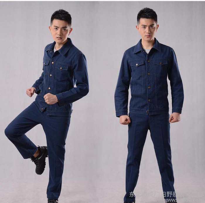長袖純棉牛仔工作服套裝男 秋冬季勞保服廠服工作服 電焊工服定做
