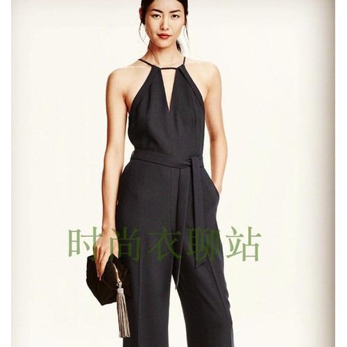 2017鈿瓔新款吊帶闊腿褲女高腰黑色顯瘦夏季休閑背帶寬松連體褲