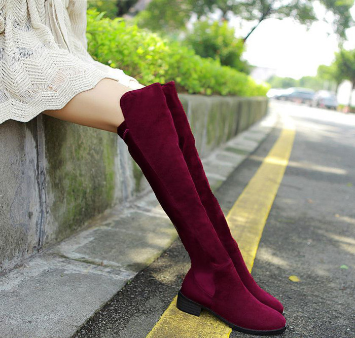 外貿原單2014秋冬保暖短靴低跟高筒長女靴拼接裙子百搭騎士靴