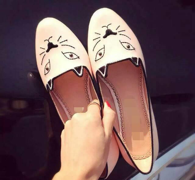 歐洲站新款平底刺繡貓臉單鞋平跟圓頭女鞋歐美休閑牛仔貓咪鞋