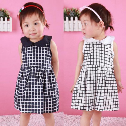 2014夏季新款童裝 幼小童女童公主格子裙娃娃領(lǐng)背心裙 一件