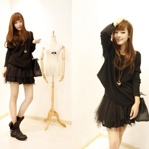 2014秋季新款 寬松短上衣長袖 吊帶純色背心 裙擺式尾端雙層網紗拼接甜美公主裙套裝連衣裙