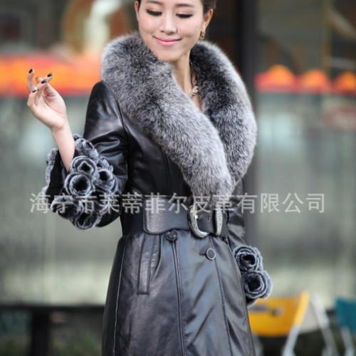 真皮,羽絨服,皮衣羽絨服,進口**毛,獺兔毛玫瑰花型