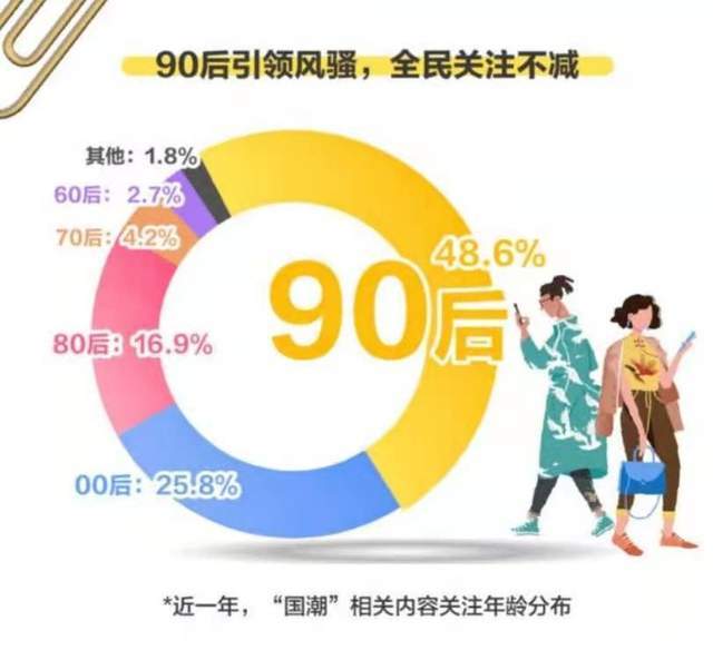 國潮所展示出的中國文化元素及蘊藏的文化內涵,在現代潮流形式的表現下突顯出一種特立獨行的時尚感,追求個性展示的年輕人們自然也愿意擁抱甚至推崇國潮產品。
