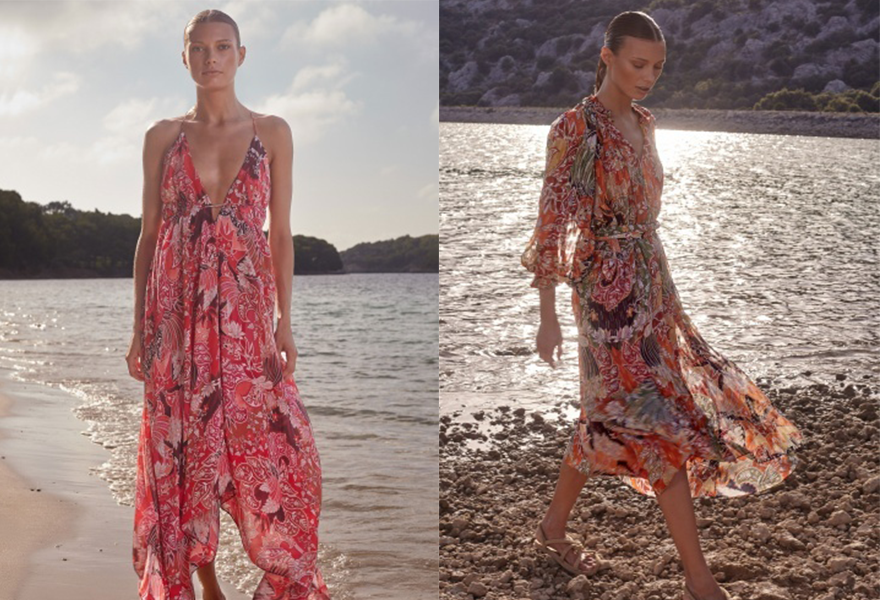 出現在裙裝的印花圖案,經常會和輕薄的面料一起出現,在圖案營造的氛圍之中,也會更多一些面料帶來的輕盈和飄逸的浪漫;