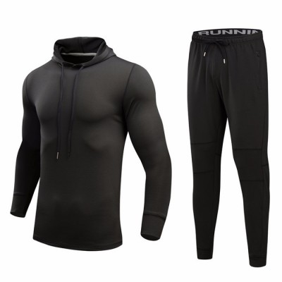 2017秋冬新款男士休閑衛(wèi)衣套裝緊身長袖衫透氣健身服運動跑步衣