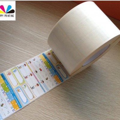 韓國出口定制輪轉(zhuǎn)印卡通人物卷裝自粘布標(biāo)不干膠
