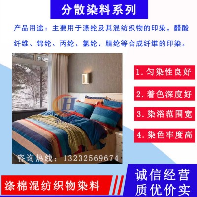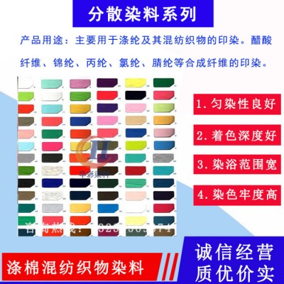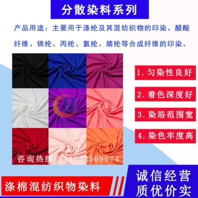 分散染料是一類分子比較小,結構上不帶水溶性基團的染料。它在染色時必須借助于分散劑,將染料均勻地分散在染液中,才能對聚酯之類的纖維進行染色。