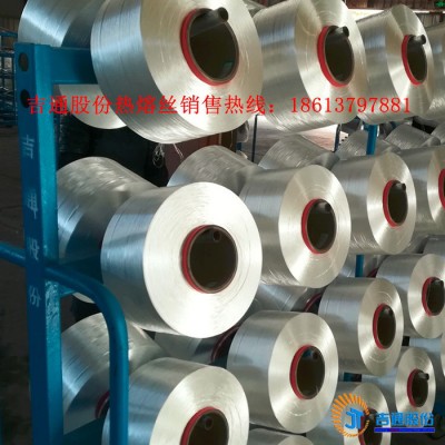 洛陽吉通新合纖股份有限公司,生產(chǎn)供應(yīng)150D,100D,低熔點(diǎn)滌綸絲,也叫熱熔滌綸絲。熔點(diǎn)110度。我司與洛陽石化打成戰(zhàn)略合作關(guān)系,采用全進(jìn)口日本TMT機(jī)械設(shè)備洛陽石化生產(chǎn)線,質(zhì)量穩(wěn)定,品質(zhì)保證。月產(chǎn)量達(dá)250噸左右,保證旺季不斷貨。