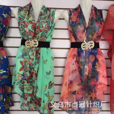 通知!!!為了滿足客戶需求(百變雪紡衫)全部更新都是客戶好賣的花色……現已全國火爆 展會,旅游區,步行街 熱賣好產品 可變:披肩,防曬衣,圍巾 想怎么變**怎么變……幾十個花色混批,100件批、訂貨送彩頁-~花型不斷更新……一直被模仿……本產品.由義烏貞冠針織廠負責生產……