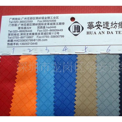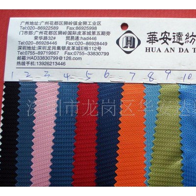 本公司擁有日本OYOTA230cm雙噴機,劍桿大小提花機,噴氣織機,噴水織機,專業(yè)生產(chǎn)特殊規(guī)格箱包面料,高爾夫球袋面料,手袋面料如:雙色提花,1680雙股提花,花邊格PU,凌形格,大斜紋,600D提花,點子料,117提花,加埝形,三股一股,立體水浪形,單鏈條,十字提花,840提花,提花格,山東綢,可提拉,五分格,三分格,米高, 900D,1000D, 1200D,1500D,1800D,雙色凌形格,600D斜紋等面料。可加工訂做歐洲低毒六項低毒ROHS標(biāo)準(zhǔn),廠價直銷,歡迎來樣訂購! 本公司以質(zhì)量求生存,服務(wù)謀發(fā)展,您的滿意是我們不懈的追求!