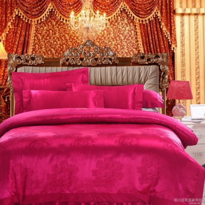 此 款貢緞繡花提花四件套A面為50%貢緞提花面料+50%全棉,B面為133×72全棉面料,棉纖維的強度高,透氣性好。產品采用活性印染,不起球,不褪 色。面料采用奢華貢緞面料,結合細膩的大提花工藝,織造出絲滑、柔軟、親膚,富有光澤的極致**,長期使用色彩亮麗,久用如新,柔軟親膚的特性更適合婚慶 中的您。