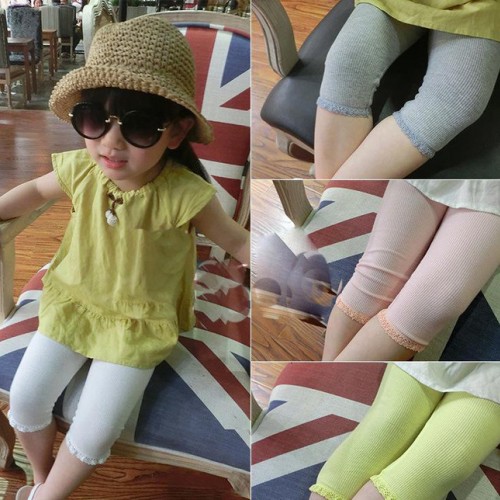 說明 | 夏款女童寶寶打底褲七分褲螺紋蕾絲多色彈力 | ||