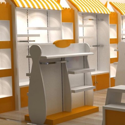 設(shè)計(jì)說明:此款童裝陳列展示柜臺是市面上比較多客戶定做的款之一,自然、陽光、舒適的設(shè)計(jì)風(fēng)格,俏皮可愛、搶眼、溫馨,是您開店的**選擇。