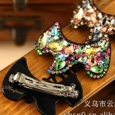 爆款熱賣韓國飾品 可愛小狗韓版璀璨玻璃水晶橫夾發卡 水鉆頂夾頭飾 發夾
