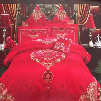全棉貢緞提花刺繡婚慶四件套