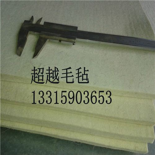 其中還有針刺工業毛氈:包括 112型、122型、132型、332型工業氈,拋光專用氈、軍工特品氈、吸油氈、隔熱氈、細白氈、半細白氈、半粗白氈、彩色工業氈,漆包線電磁線專用氈等。 (二)民用毛氈:民用防寒氈、針刺氈 。 (三)針刺化纖氈:防寒化纖氈,印花化纖氈,大棚用氈。(四)無紡布:100克以上的羊毛化纖。 (五)毛氈制件:毛氈墊(毛氈油封)、毛氈圈、毛氈條、毛氈筒、毛氈輪、毛氈繩、毛氈帶,異形氈制品等 。 (六)娛樂毛氈:書畫毛氈、鋼琴用氈、板擦用氈、麻將用氈等娛樂文化用氈 。主要用于:機械、機電、化工、水泥、輕紡工業、也可用于大理石、不銹鋼、精密家具拋光、汽車、、輪船、機床等設備防塵,密封、隔音、保溫、絕緣、絕熱其性能使用良好。