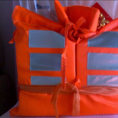 2、鮮艷的橙色且配有四塊熒光片,非常顯眼,萬一出了事故**很容易被人發現,可以盡快的實施救援。
